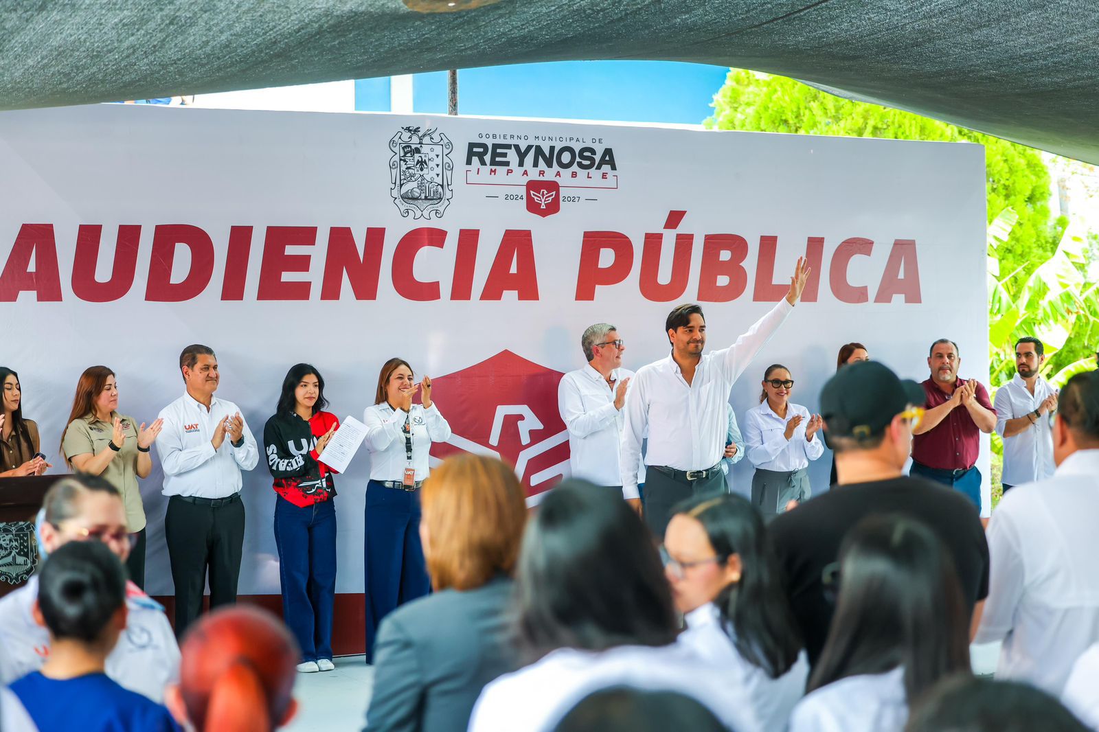 “Nosotros nos hemos enfocado en el tema educativo, por ejemplo hoy tenemos Becas de Titulación, Becas de Posgrado para el que quiera si se van a graduar”, aseguró el Presidente Municipal, en presencia del Dr. Jaime Gerardo Malacara Navejar, Director de la Unidad Académica Multidisciplinaria Reynosa-Rhode, del Diputado Juan Carlos Zertuche Romero y Sonia Lutrilllo Olvera, representante de los estudiantes.