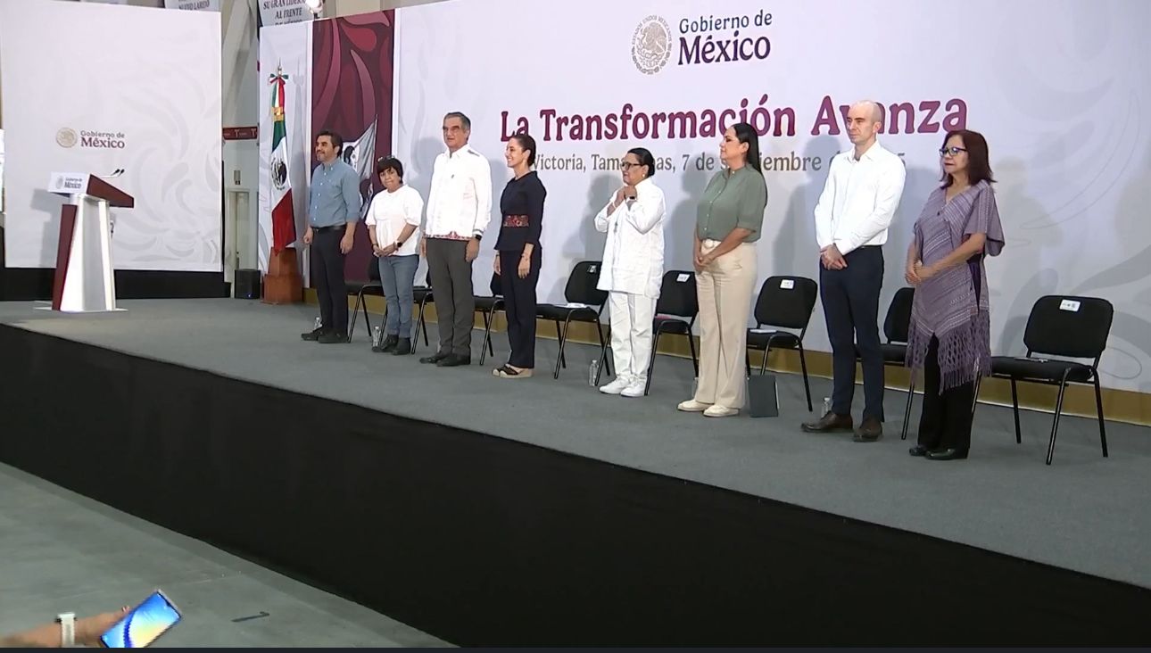 En su visita el gobernador Américo Villarreal la recibió con el mensaje de bienvenida al igual que la acompañaron la secretaria de Gobernación, secretario de Desarrollo Agrario Territorial y Urbano, al igual de coordinadores de diferentes dependencias.